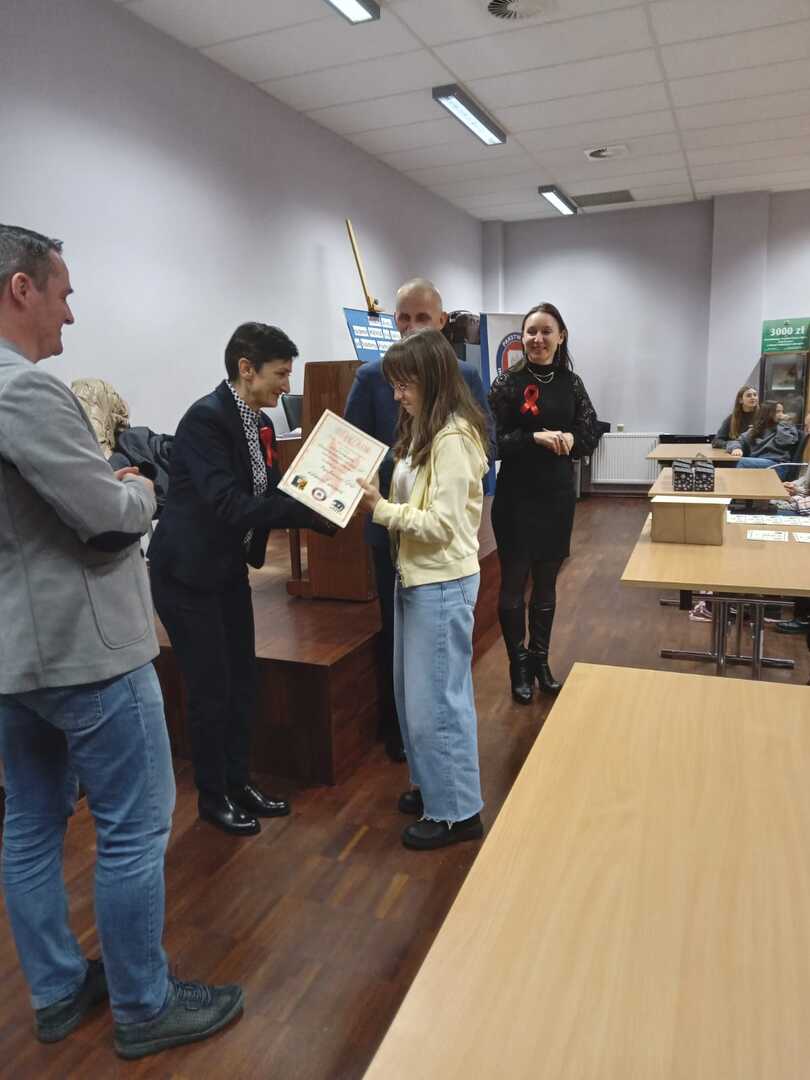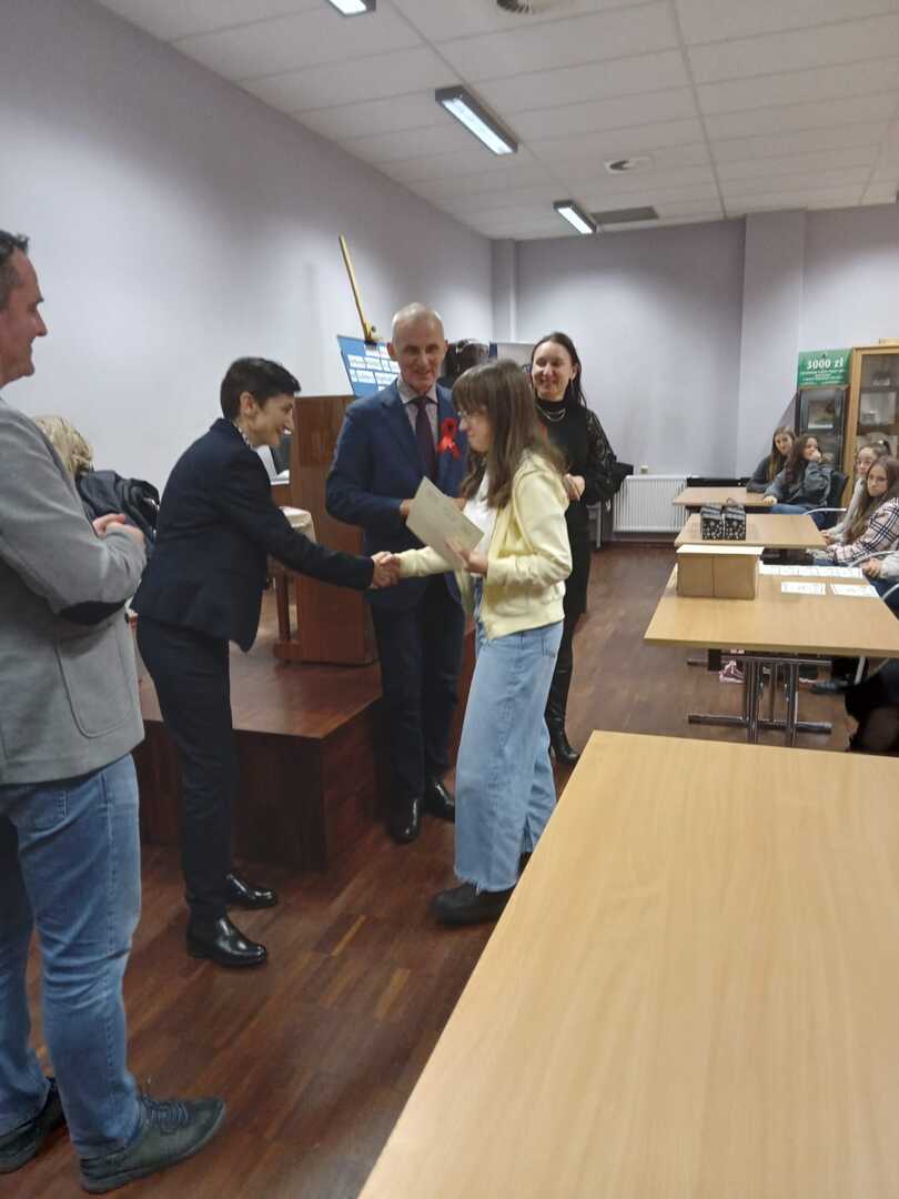 Uczniowie naszej szkoły brali udział w powiatowym konkursie wiedzy na temat HIV/AIDS oraz uzależnień psychoaktywnych w Kościerzynie. Organizatorami byli: Powiatowa Stacja Sanitarno-Epidemiologiczna w Kościerzynie, Starostwo Powiatowe oraz Miejski Ośrodek Pomocy Społeczne. Celem konkursu było kształtowanie właściwych postaw i zachowań wśród uczniów poprzez popularyzowanie wiedzy na temat zakażeń wirusem HIV i choroby AIDS oraz profilaktyka uzależnień, uświadomienie zagrożeń jakie niesie zjawisko HIV/AIDS oraz alkohol, narkotyki dopalacz. e postaw tolerancji wobec ludzi zakażonych.