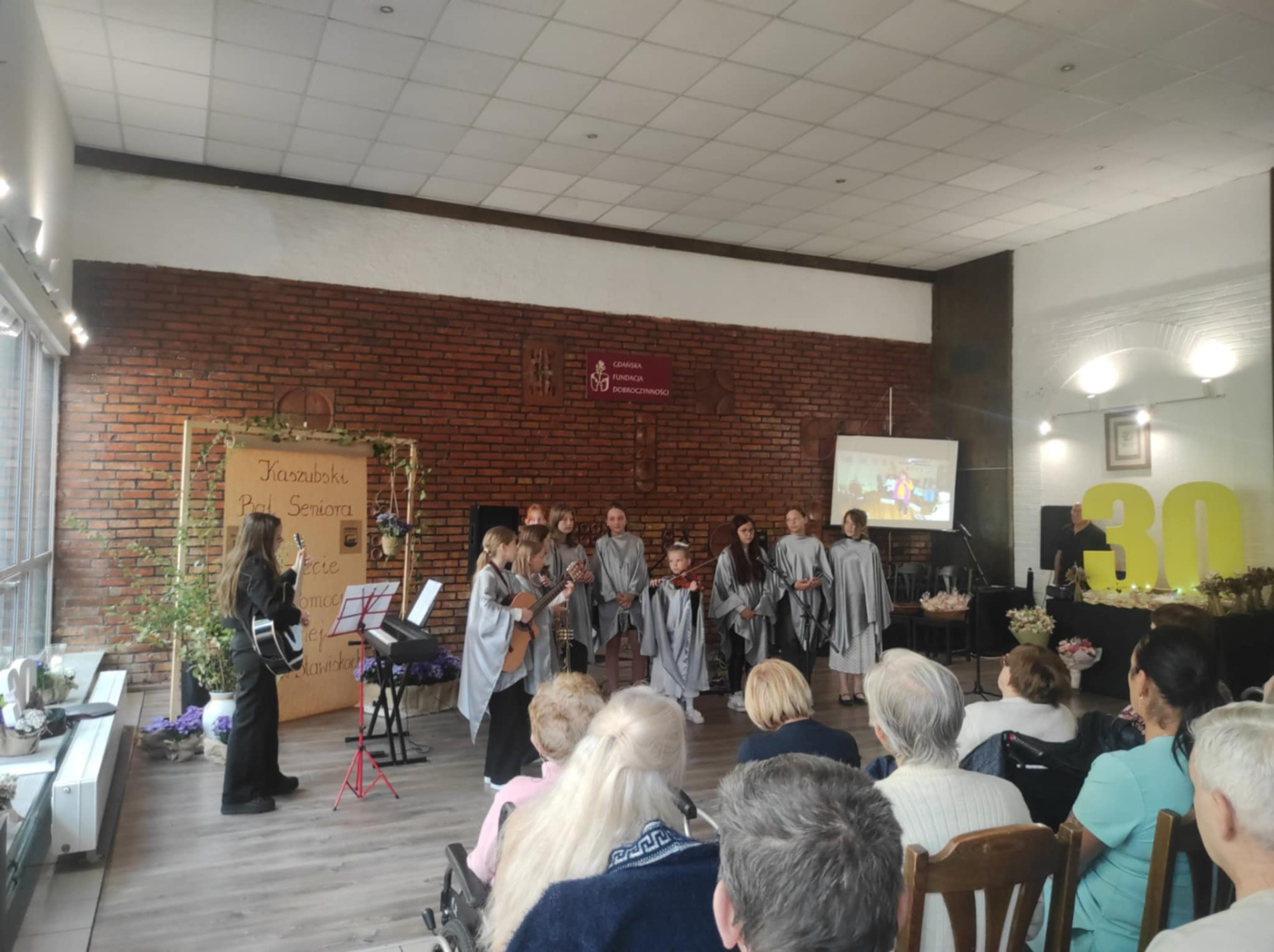 Podczas występu młodzi artyści zaprezentowali repertuar przygotowany specjalnie na tę wyjątkową okazję, obejmujący utwory kaszubskie jak i popularne piosenki bliskie sercom seniorów. Ich występ spotkał się z bardzo ciepłym przyjęciem – nie zabrakło wzruszeń, uśmiechów i wspólnego śpiewania.
