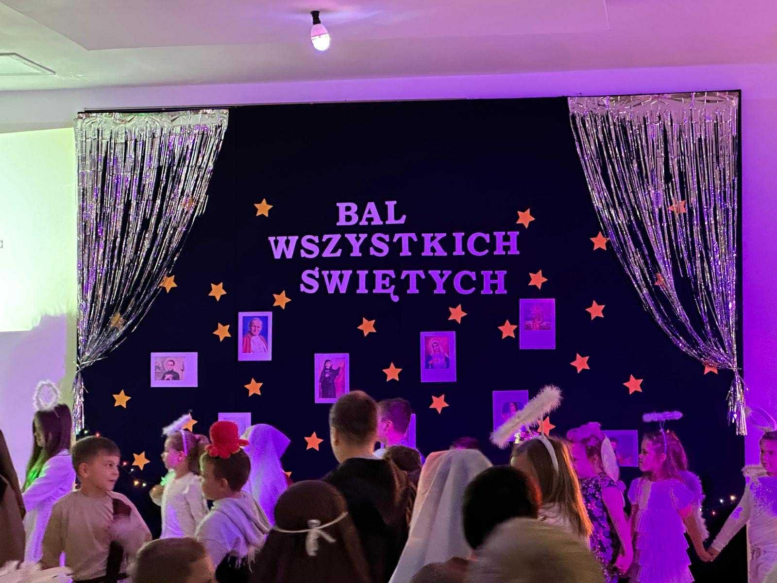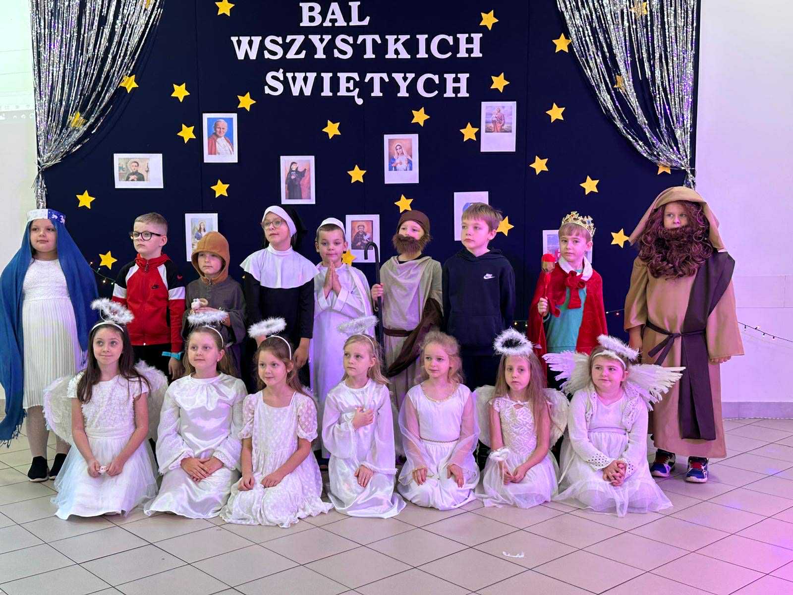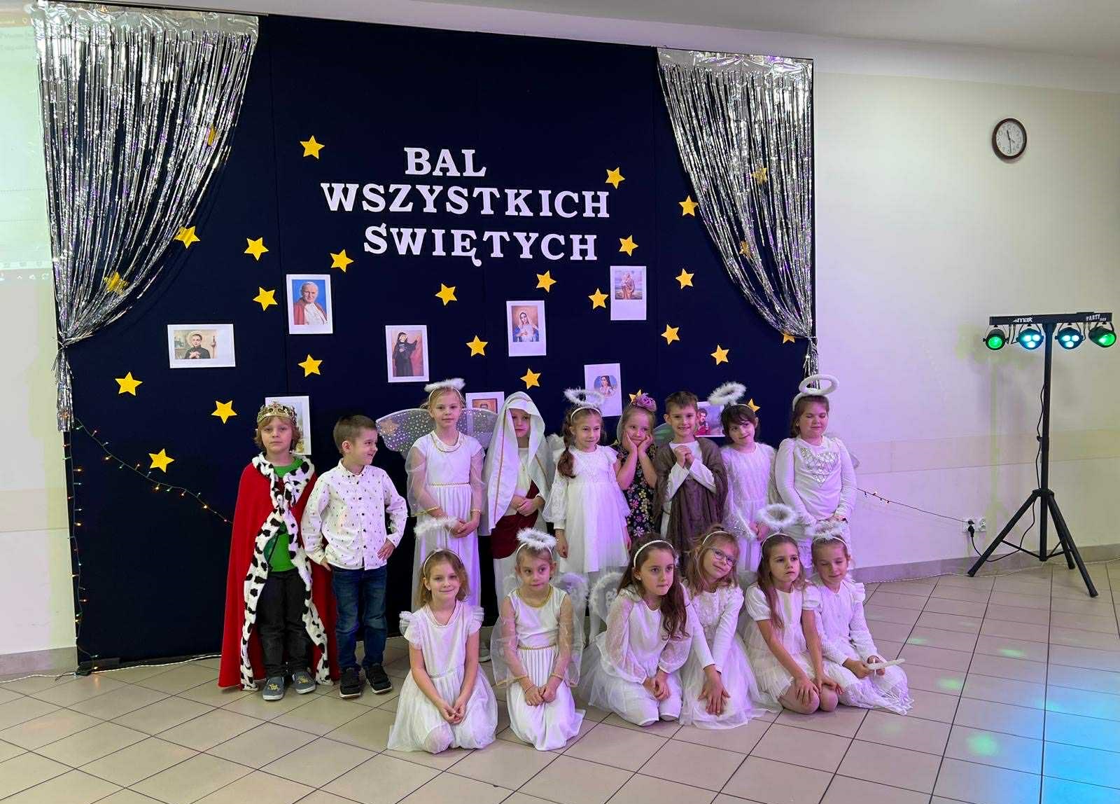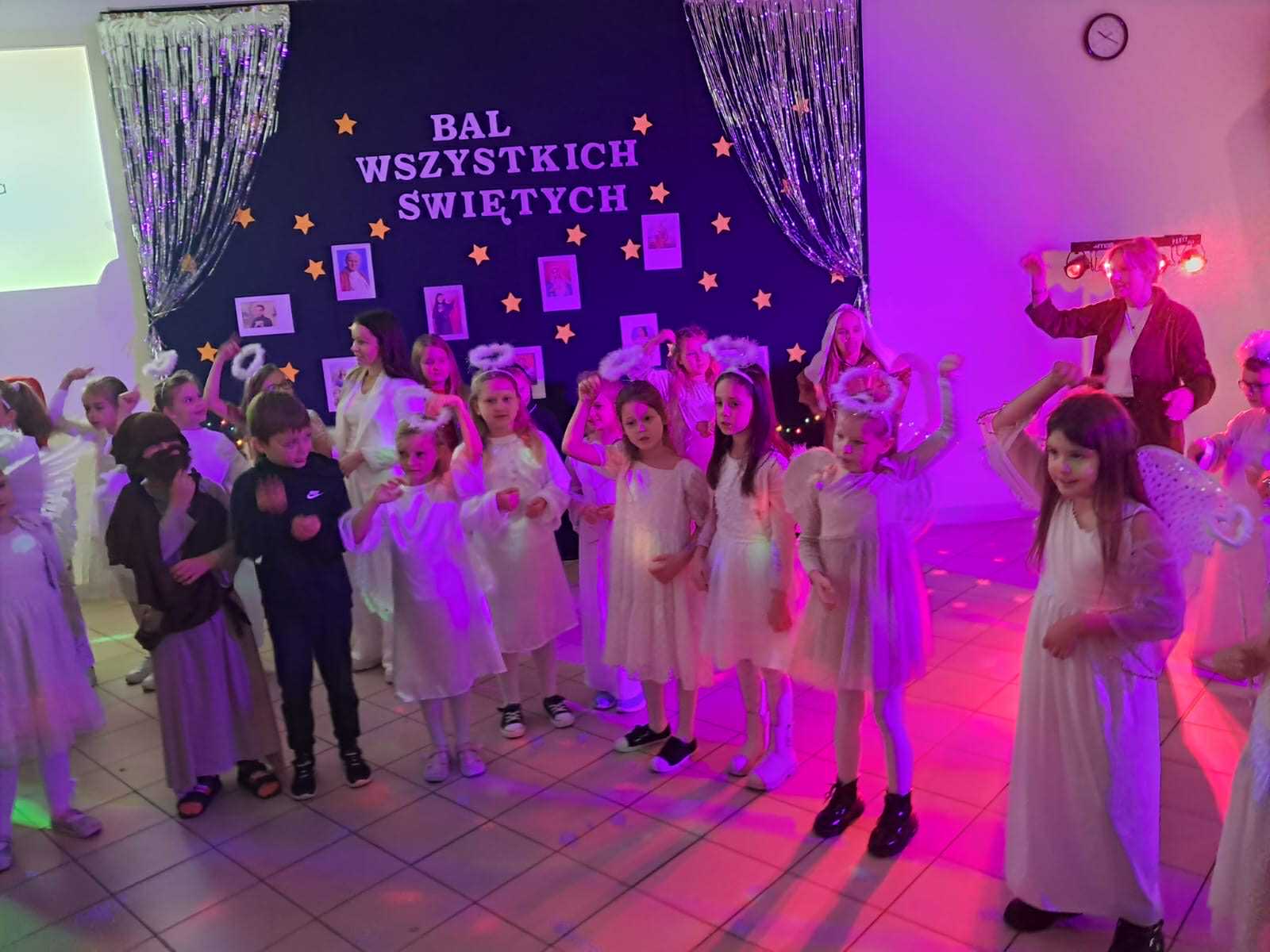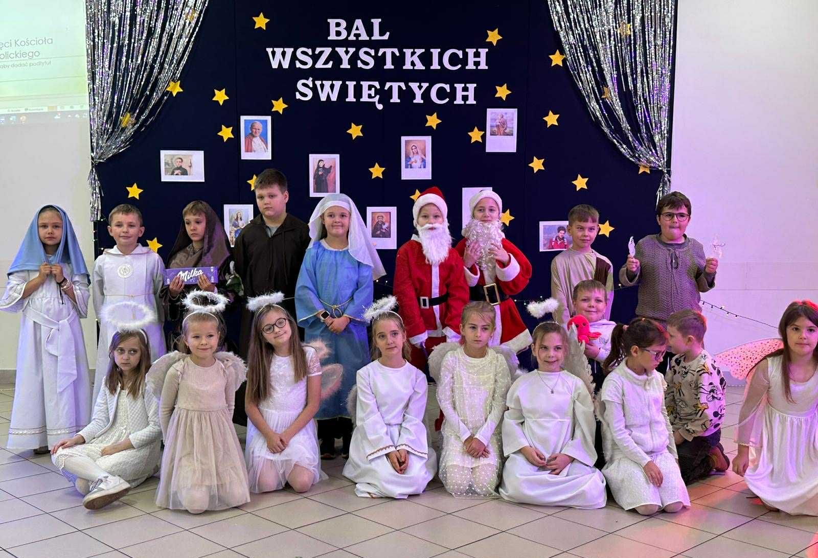 Uczniowie z klas 1-3 przyszli przebrani za świętych i aniołów, tworząc niezwykły, kolorowy korowód pełen uśmiechów i pozytywnej energii. Podczas balu odbyły się konkursy z nagrodami, wspólne tańce, śpiew piosenek religijnych, a także zabawy integracyjne, które dostarczyły wszystkim uczestnikom wiele radości.