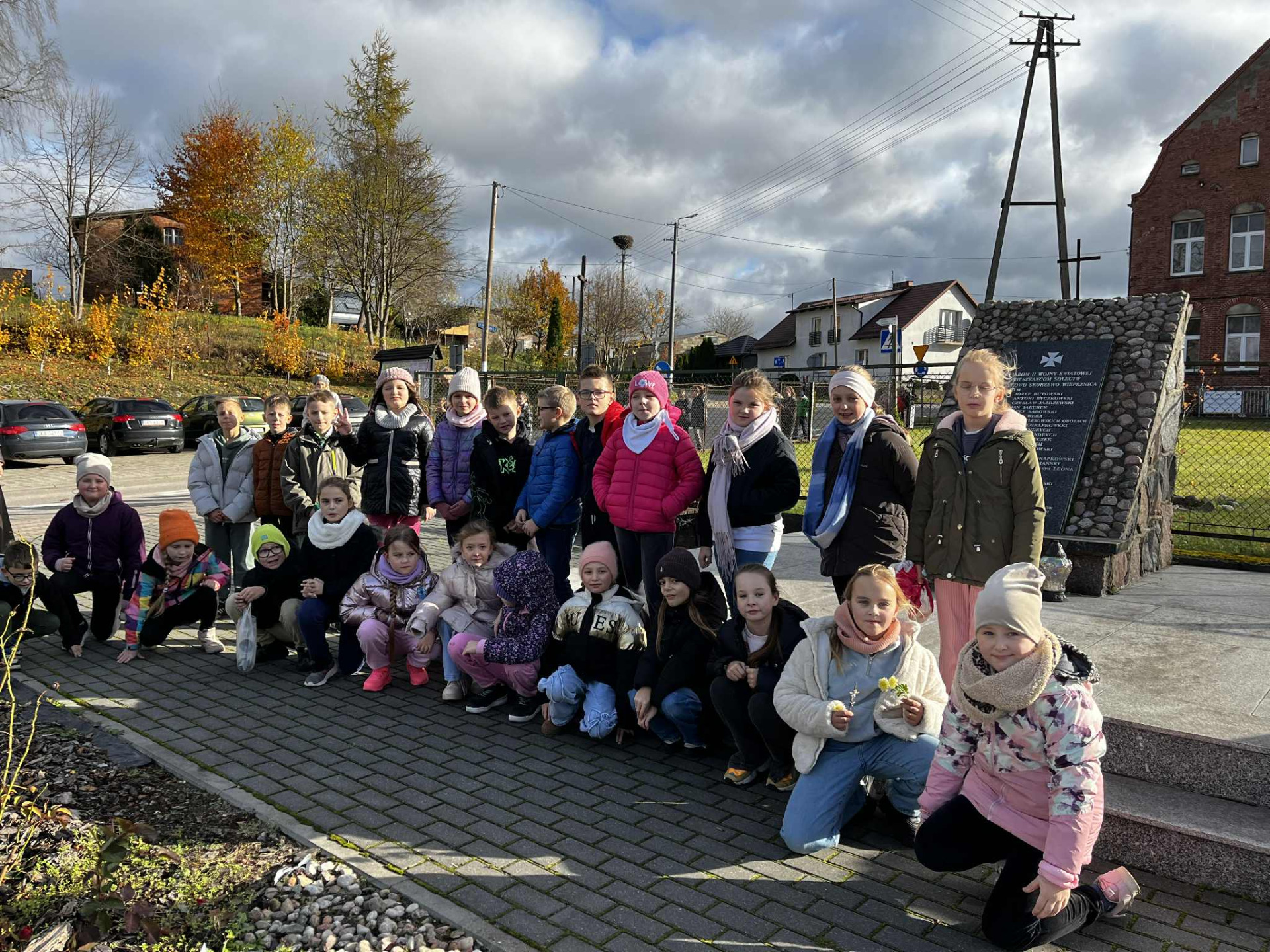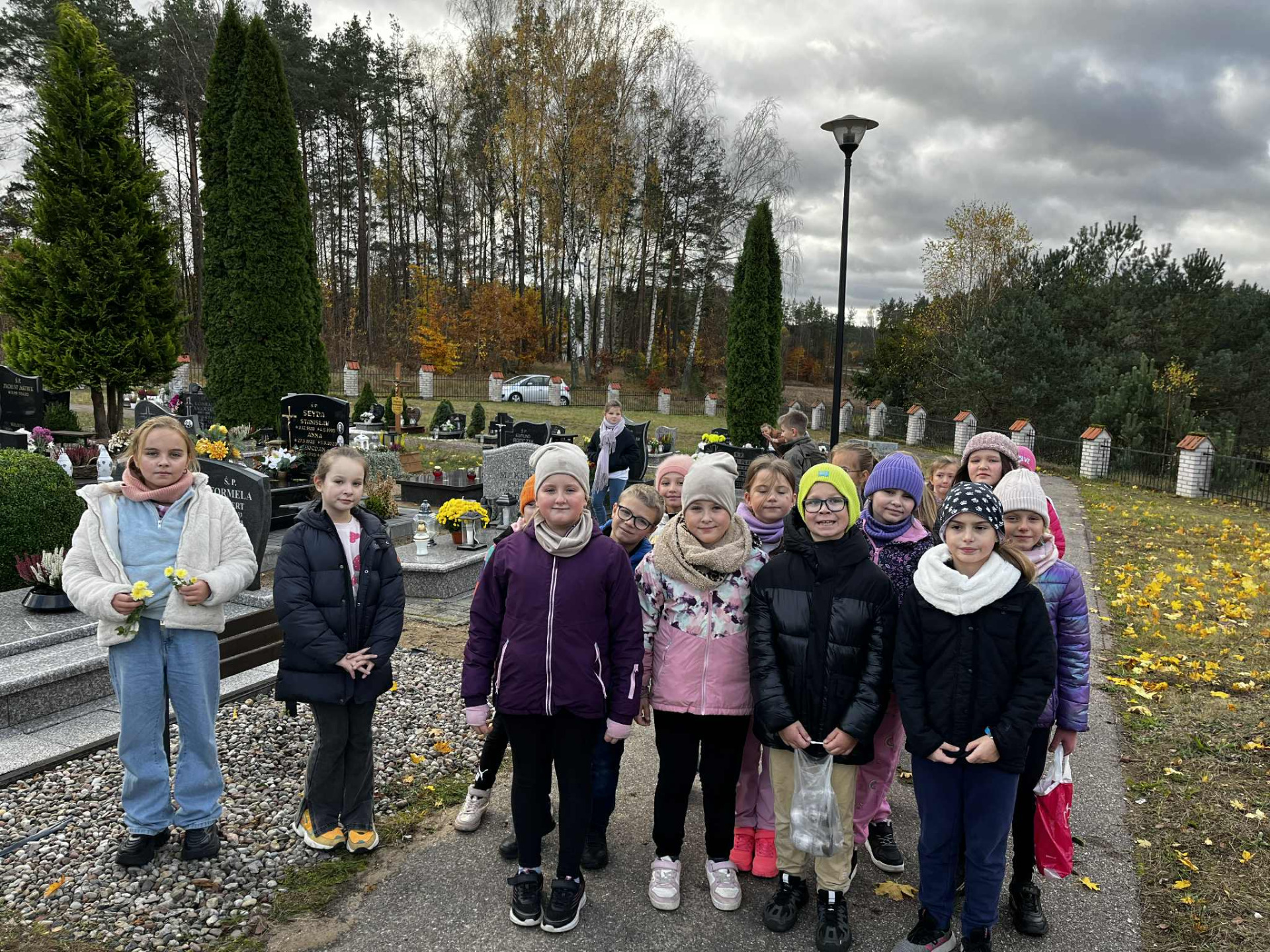 W dniu 31 października 2025 roku uczniowie klasy III wraz z wychowawcą udali się na miejscowy cmentarz, aby odwiedzić groby i uczcić pamięć zmarłych. Dzieci z zadumą zapaliły znicze i pomodliły się w intencji tych, którzy odeszli. Następnie uczniowie udali się pod pomnik osób poległych podczas II wojny światowej, gdzie również zapalili znicze, oddając hołd osobom walczącym o wolność naszej ojczyzny.