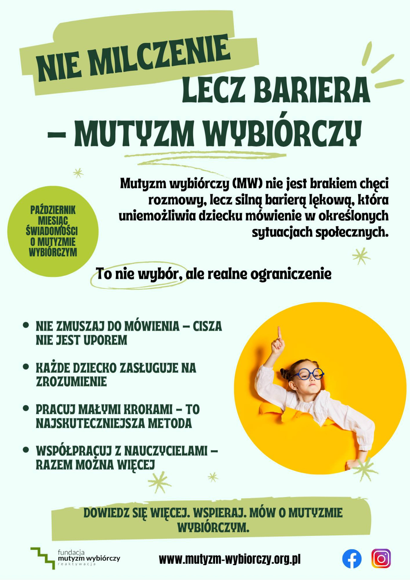 PAŹDZIERNIK – MIESIĄC ŚWIADOMOŚCI MUTYZMU WYBIÓRCZEGO