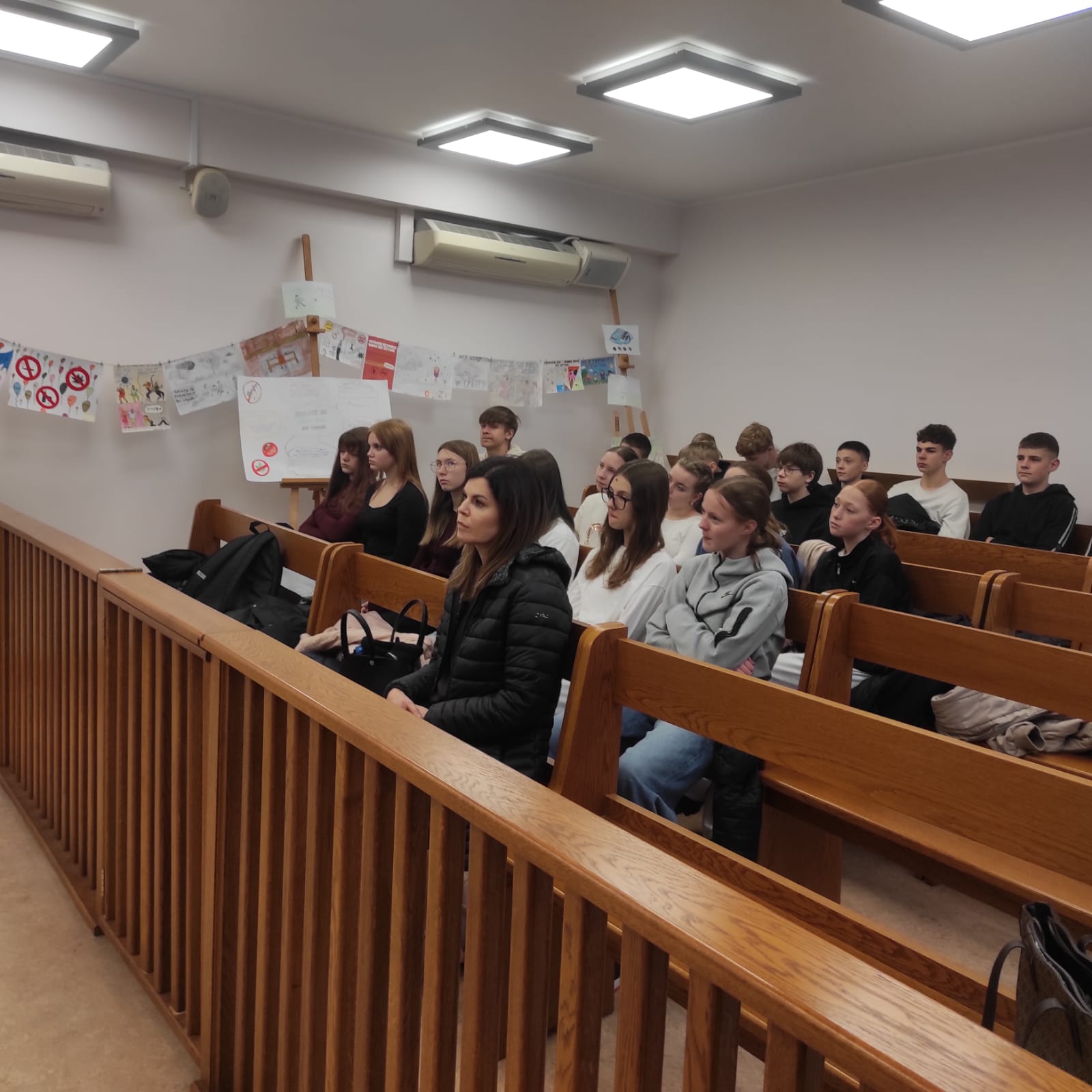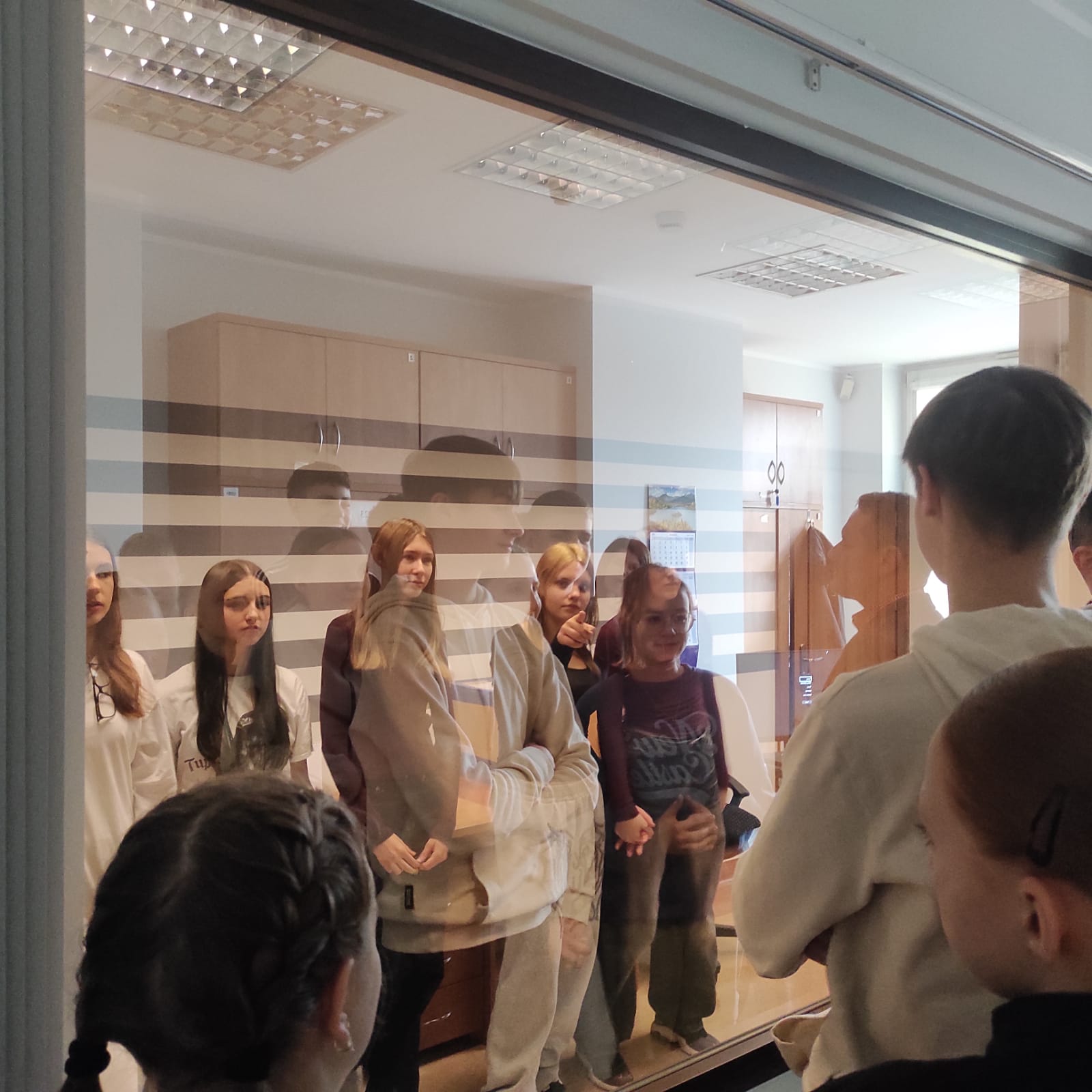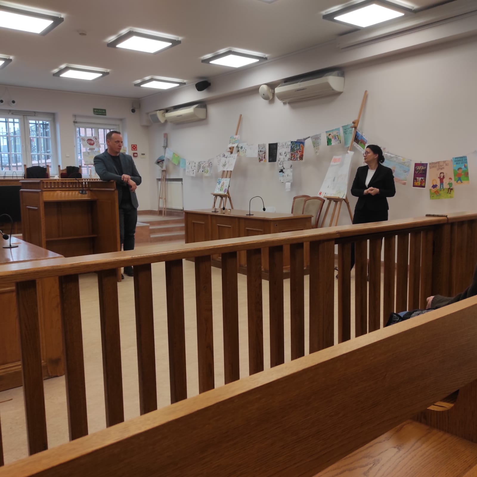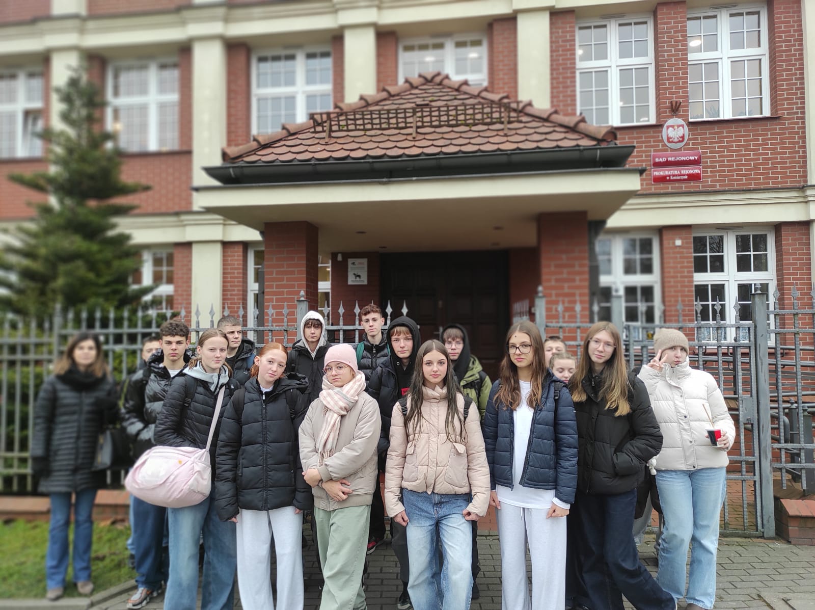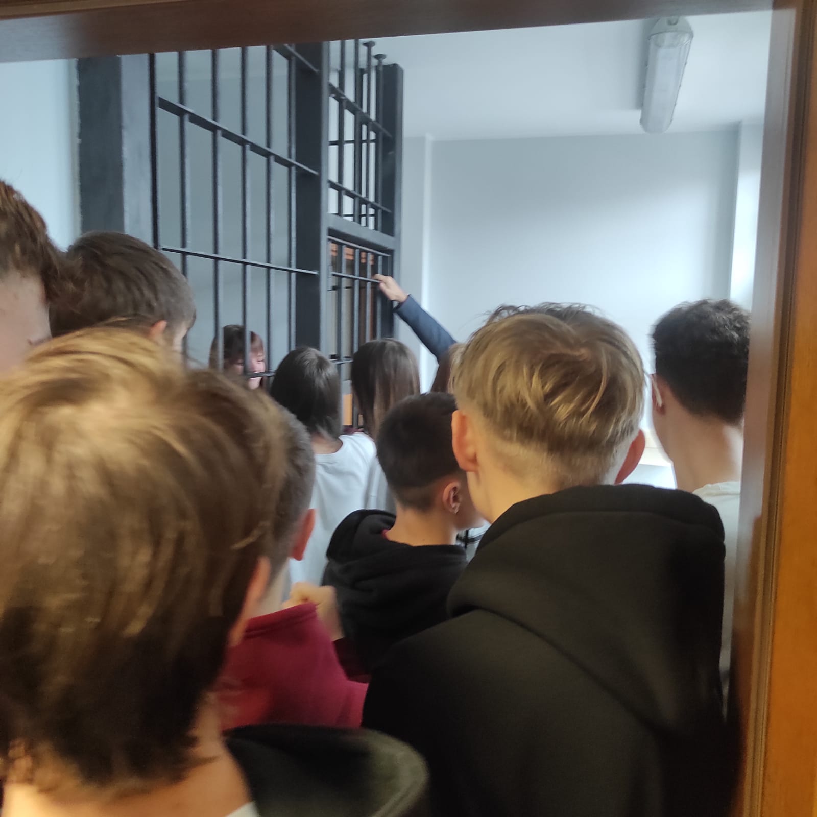 Podczas spotkania uczniowie mieli możliwość zadawania pytań związanych z funkcjonowaniem wymiaru sprawiedliwości. Młodzież została oprowadzona po budynku sądu: niebieskim pokoju, pomieszczeniu okazania i areszcie. Pan Prokurator Marcin Lubiński przedstawił symulację okazania sprawcy. Wizyta w sądzie była wartościowym i pouczającym doświadczeniem, które pozwoliło uczniom zdobyć praktyczną wiedzę na temat działania instytucji publicznych oraz zasad odpowiedzialności prawnej. Wyjście zostało ocenione jako udane i przyniosło uczestnikom wiele cennych informacji.