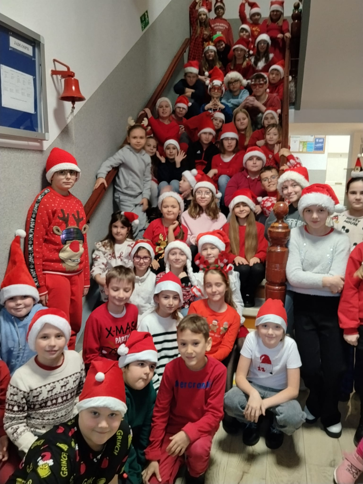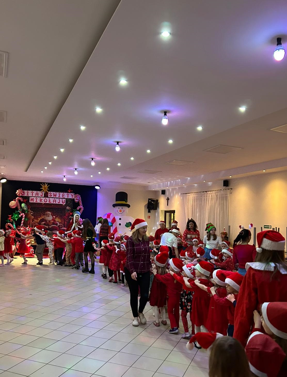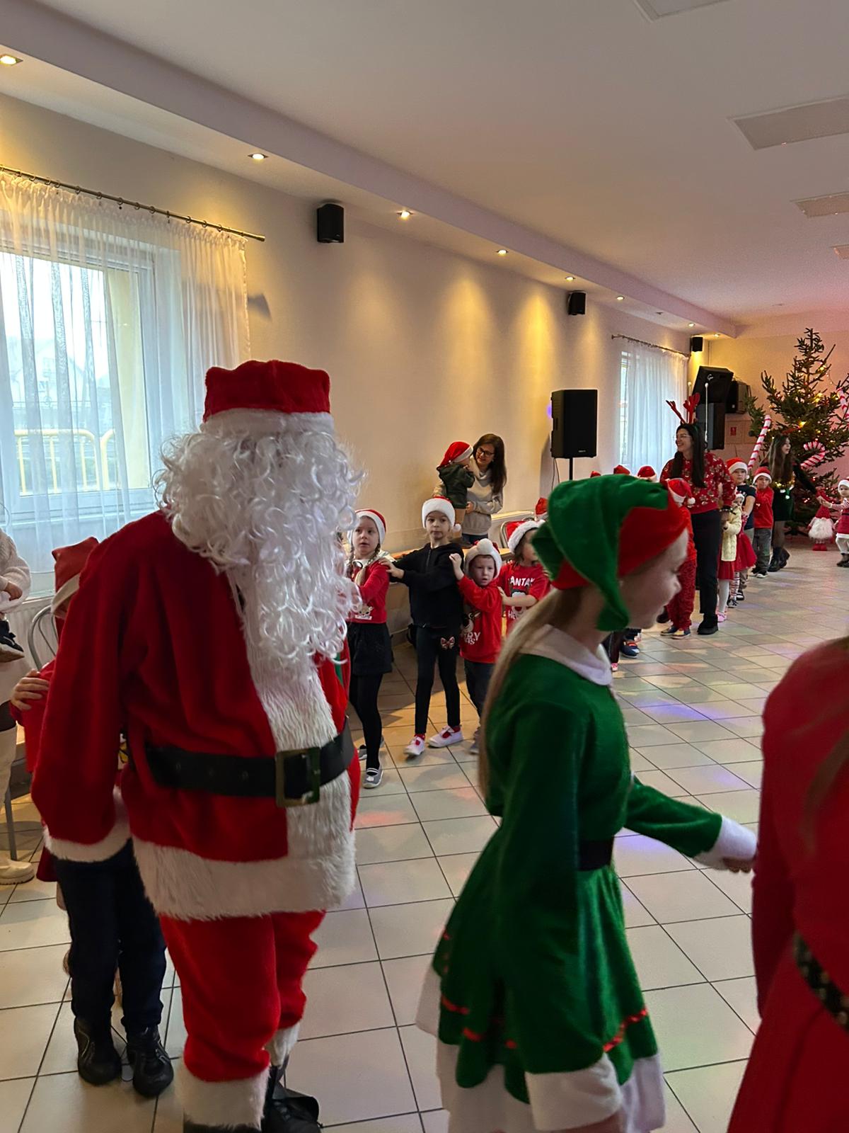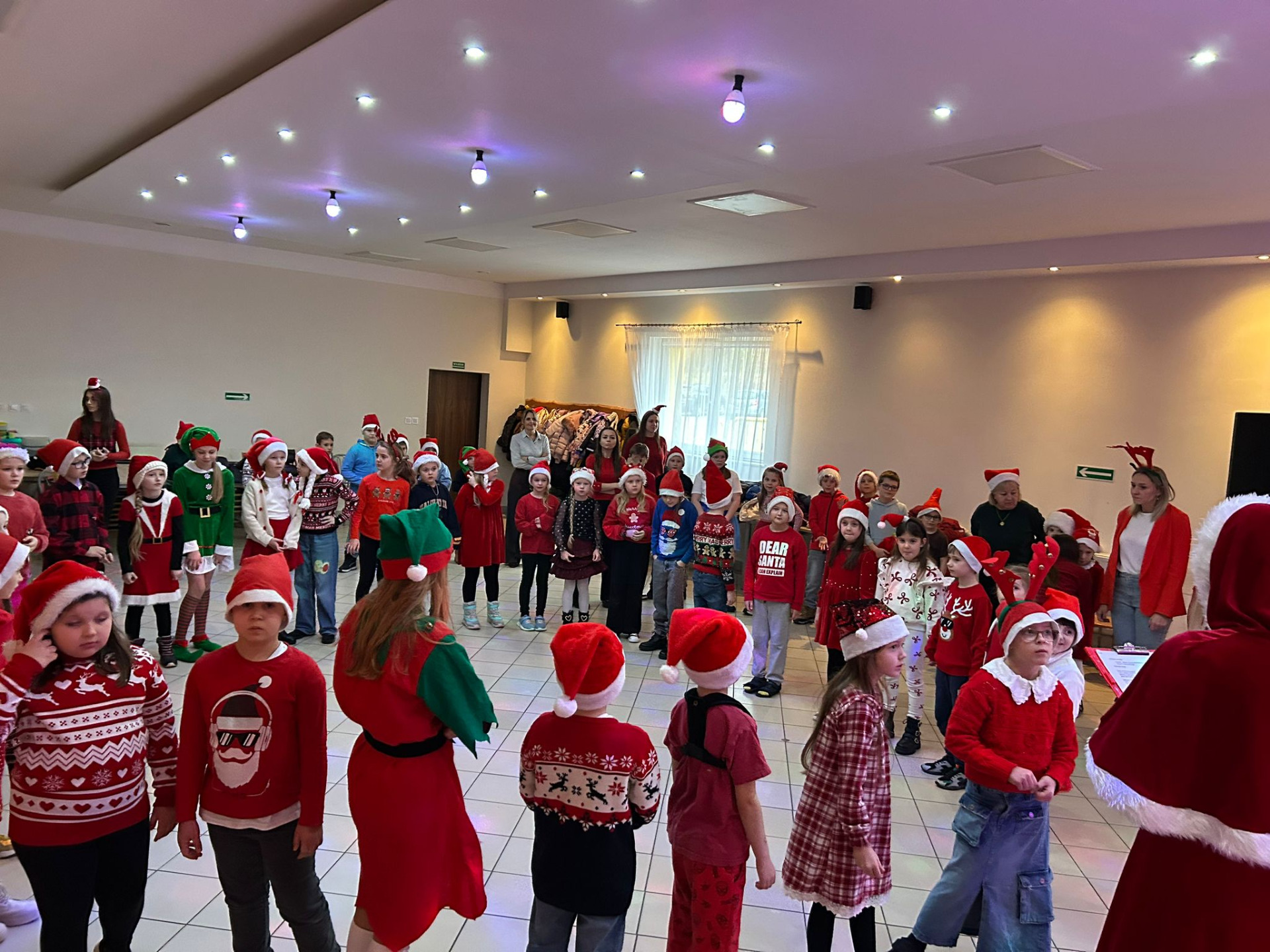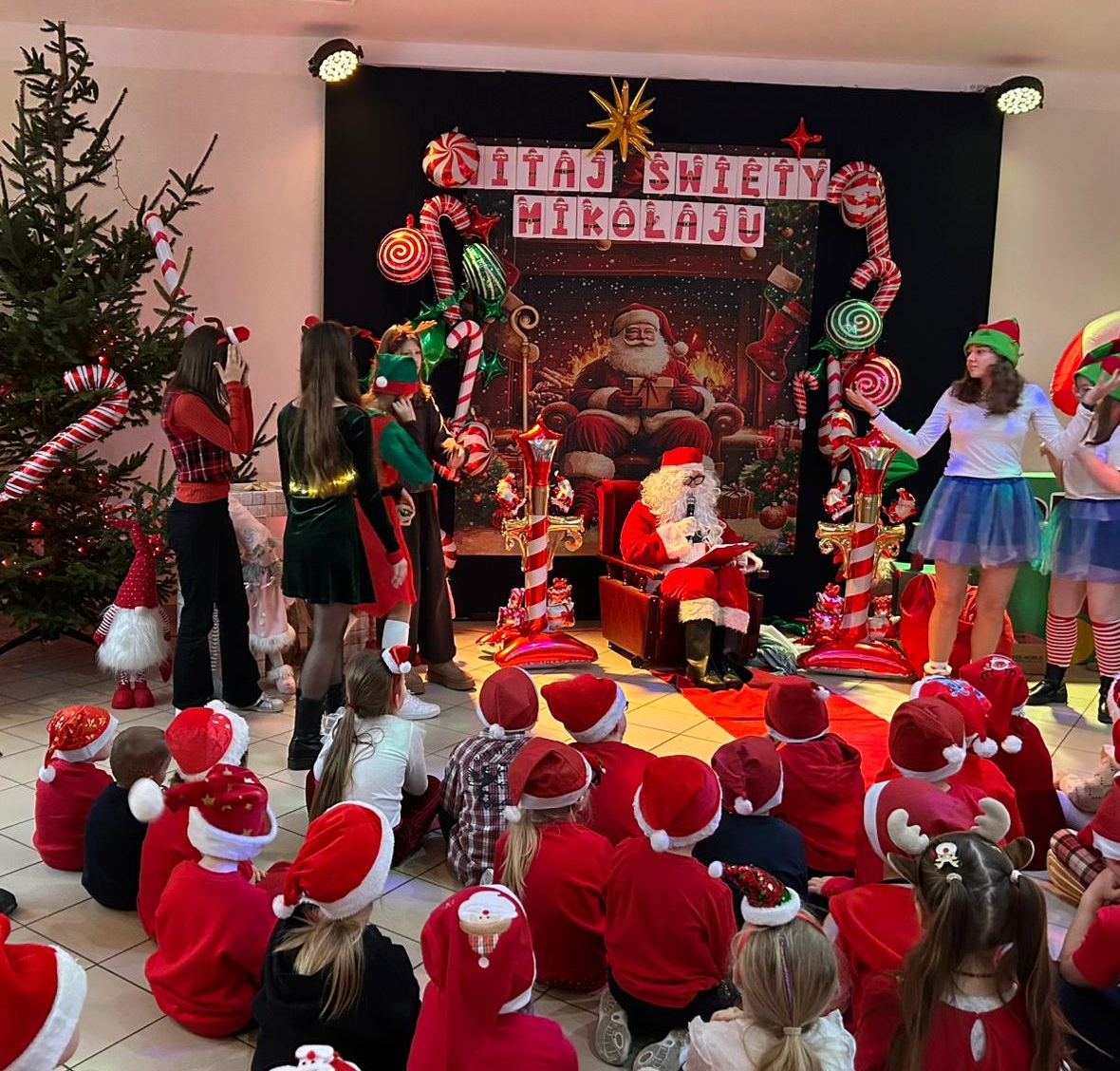 5 GRUDNIA - w tym wyjątkowym dniu naszą szkołę odwiedził Święty Mikołaj w asyście Pani Mikołajowej, wzbudzając ogromną radość wśród dzieci. 🎅 Każde dziecko otrzymało upominek, a chętni mogli zrobić sobie pamiątkowe zdjęcie z wyjątkowym gościem. Nie zabrakło także wspólnej zabawy – Mikołaj porwał wszystkich do tańca w rytm świątecznych piosenek.
