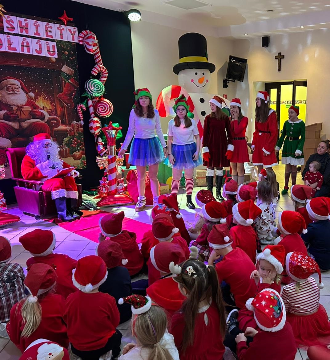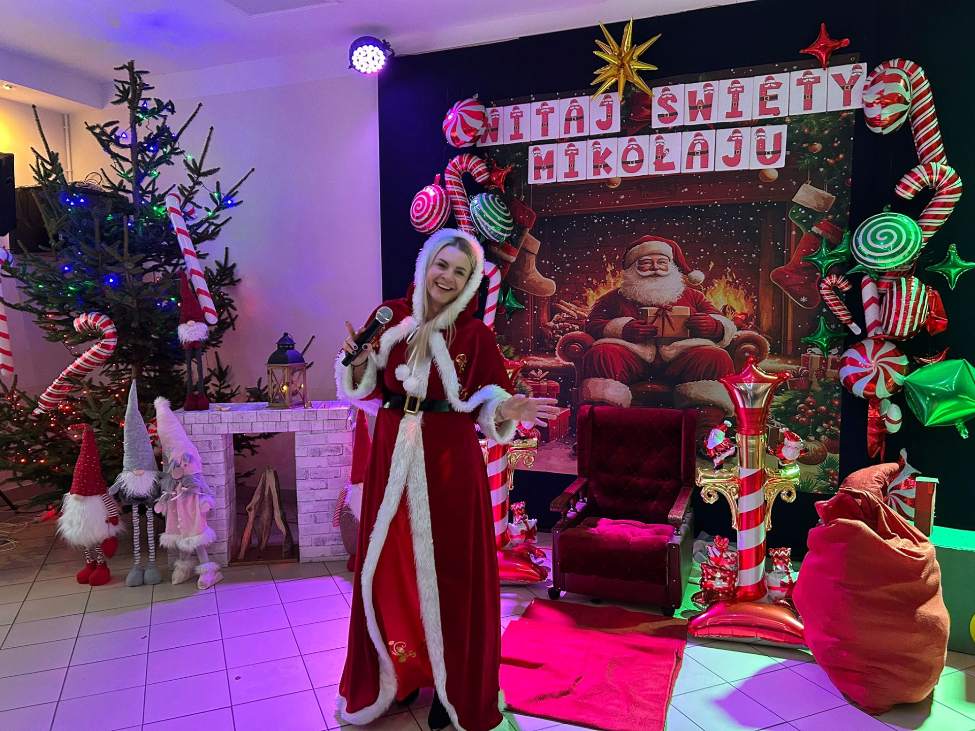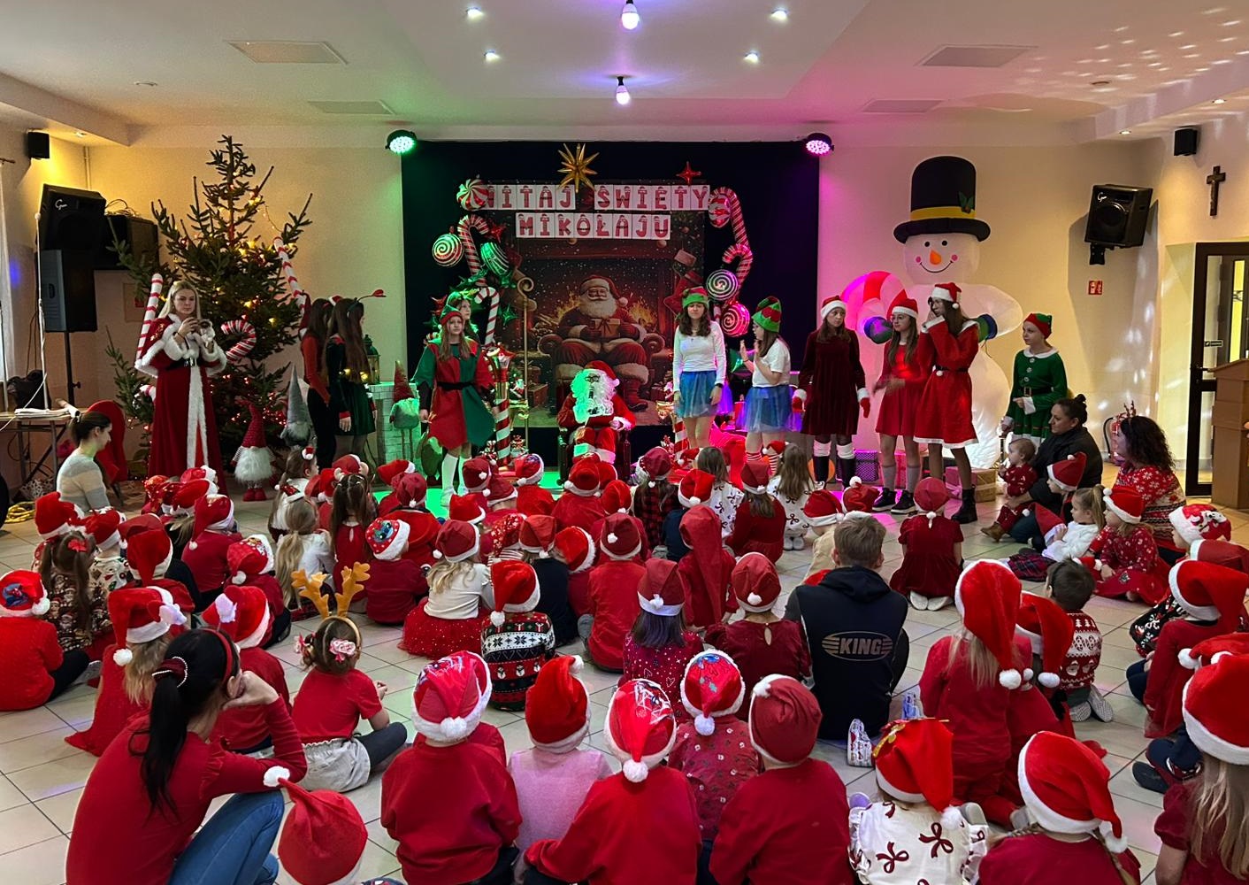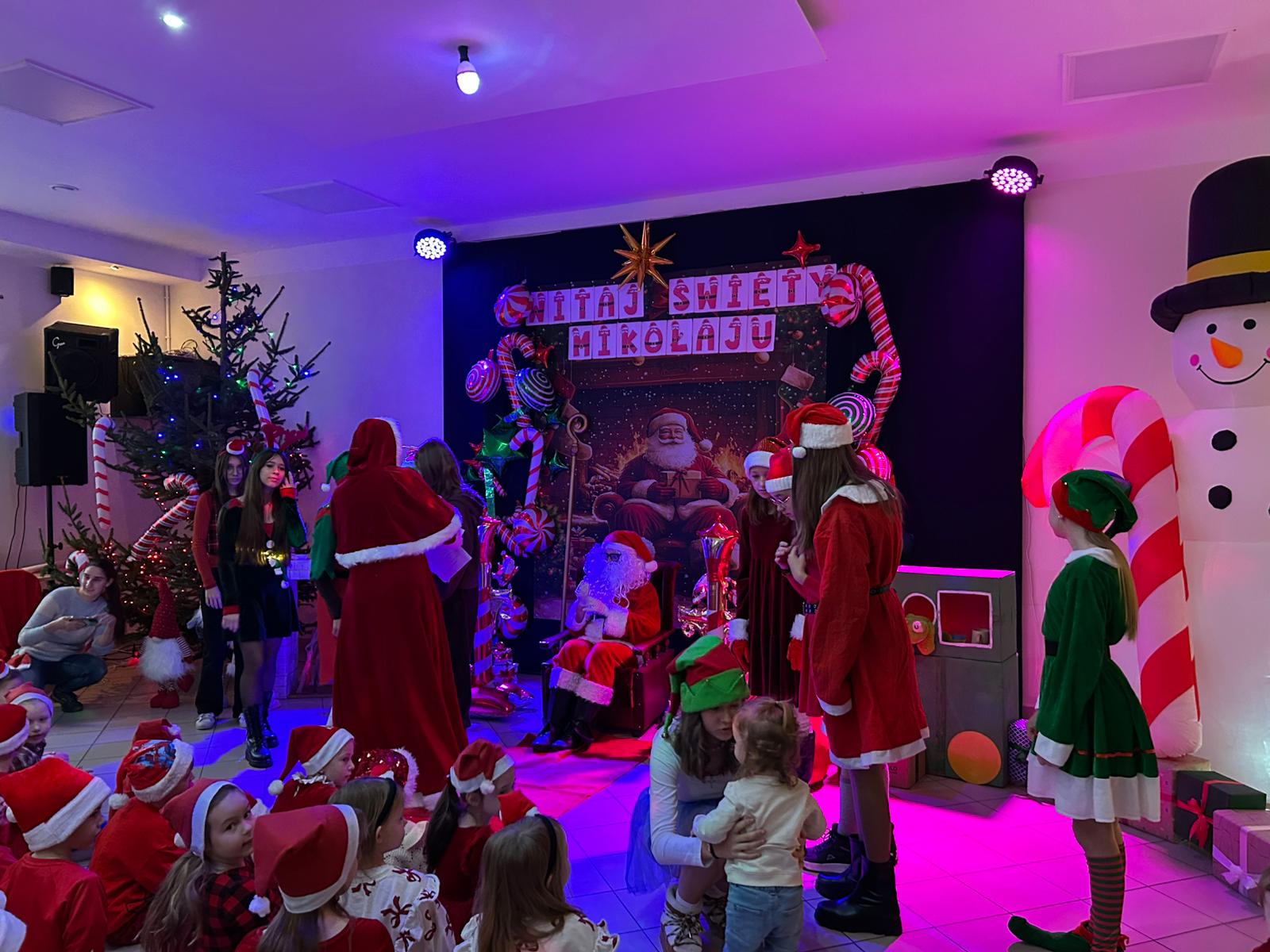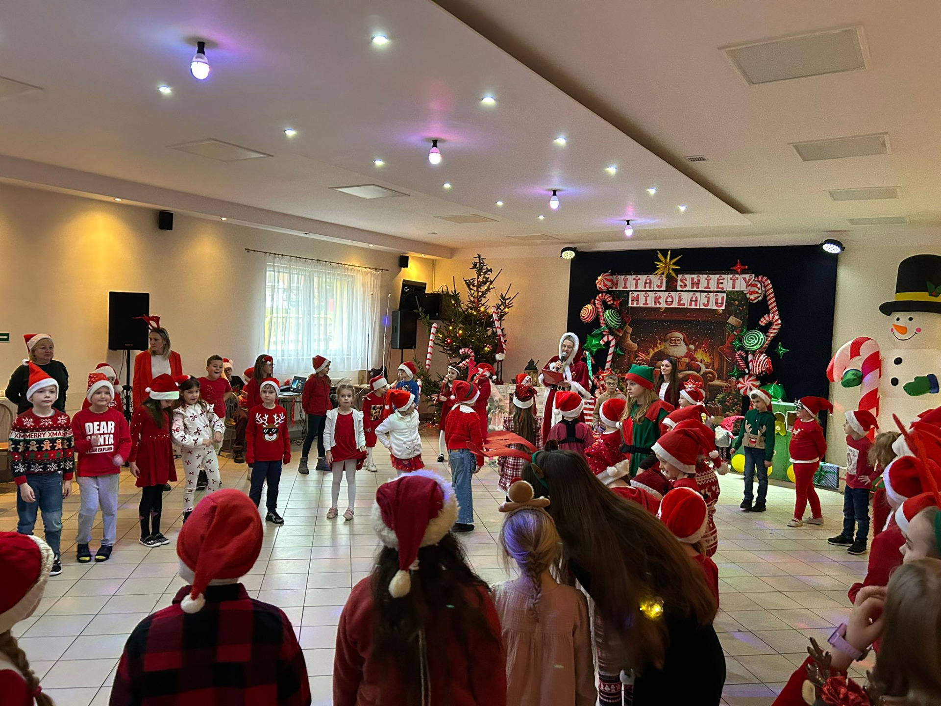 5 GRUDNIA - w tym wyjątkowym dniu naszą szkołę odwiedził Święty Mikołaj w asyście Pani Mikołajowej, wzbudzając ogromną radość wśród dzieci. 🎅 Każde dziecko otrzymało upominek, a chętni mogli zrobić sobie pamiątkowe zdjęcie z wyjątkowym gościem. Nie zabrakło także wspólnej zabawy – Mikołaj porwał wszystkich do tańca w rytm świątecznych piosenek.