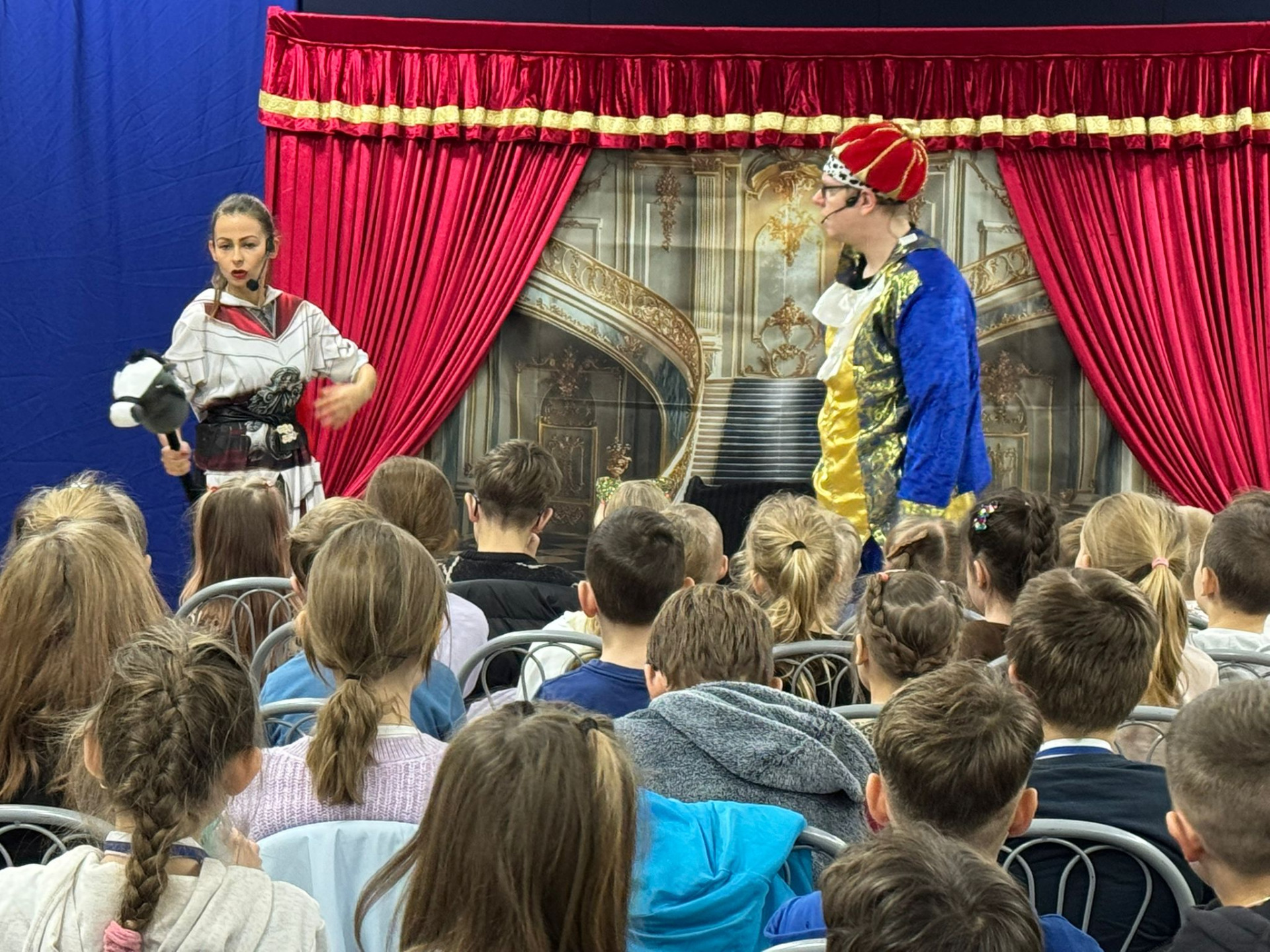 8 grudnia odbyło się przedstawienie profilaktyczne pt. „Tajemnica zaginionych książek” dla klas 0-IV. Spektakl miał formę zabawnej, bajkowej opowieści z barwną scenografią, muzyką oraz tańcem, dzięki czemu wzbudził duże zainteresowanie wśród uczniów.